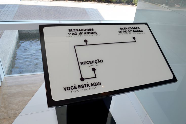 Disponibilizamos pisos táteis, placas em Braille e mapas táteis.